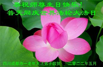 四川成都市一老年大法弟子恭祝师尊生日快乐!恭贺法轮大法日!