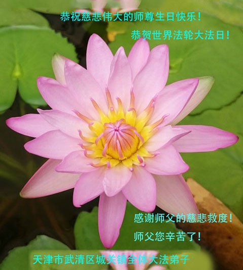 感恩师尊慈悲救度!恭祝师父生日快乐! 天津市南开区大法弟子恭祝师尊生日快乐!恭贺世界法轮大法日!