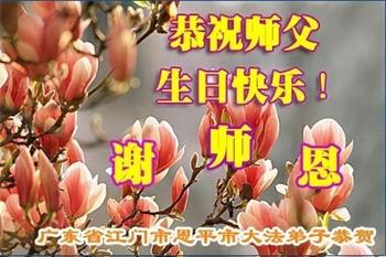 广东省江门市恩平市一家大法弟子恭祝师父生日快乐!
