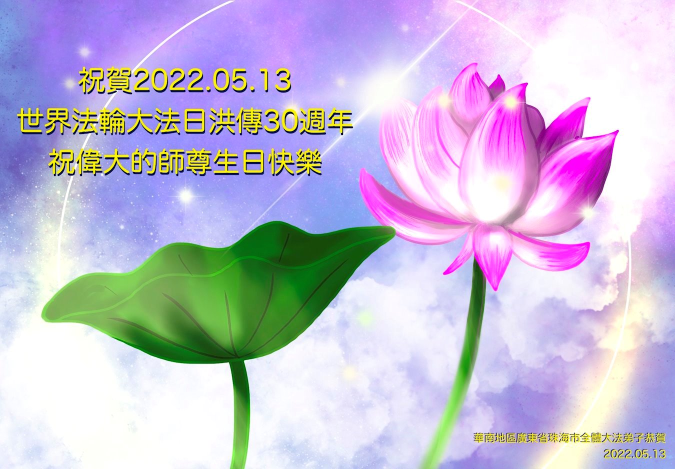 恭祝师尊生日快乐!庆祝5·13世界法轮大法日! 珠海市一大法弟子和家乡姐妹大法弟子谢谢慈悲伟大的师尊苦度!向恩师跪拜! 珠海一大法弟子和姐妹大法弟子 二零二二年五月九日 广东省中山市大法弟子恭贺世界法轮大法日!