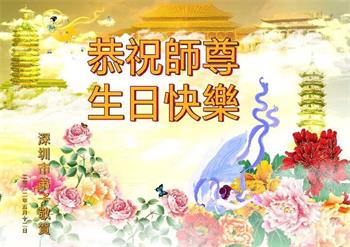 广东省深圳全体大法弟子恭贺世界法轮大法日!恭贺第二十三届世界法轮大法日!恭祝师尊生日快乐!