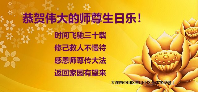 辽宁省大连市中山区景山小区全体大法弟子恭祝师尊生日快乐!
