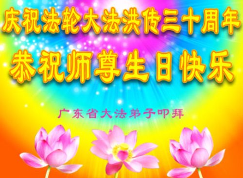 广东省恩平市大法弟子恭祝师父生日快乐! 广东省云浮市全体大法弟子恭祝师尊华诞!恭祝法轮大法洪传世界三十周年!恭祝世界法轮大法日二十三周年!
