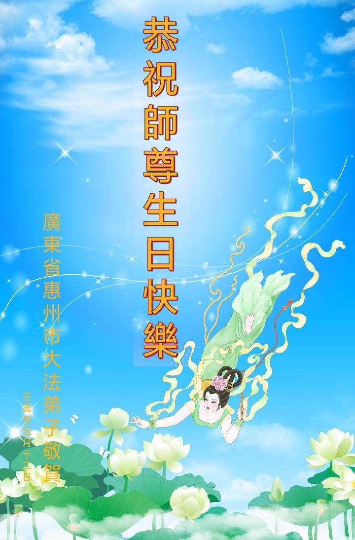 广东省惠州市全体大法弟子恭贺世界法轮大法日!恭祝慈悲伟大的师尊生日快乐!