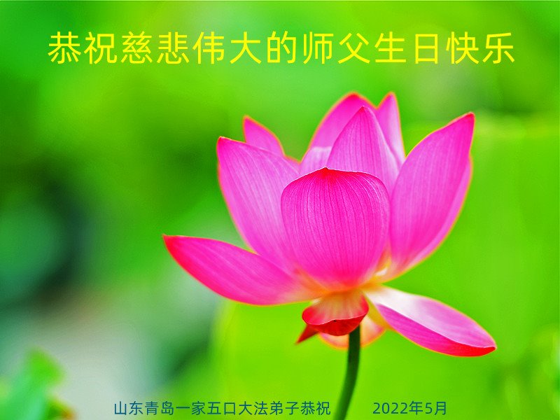 恭祝慈悲伟大的师尊生日快乐!恭祝5.13世界法轮大法日!恭祝师尊传法三十周年! 青岛大法弟子敬祝 2022年5月11日 山东省青岛市胶州市两个家庭的大法弟子恭祝师尊生日快乐!