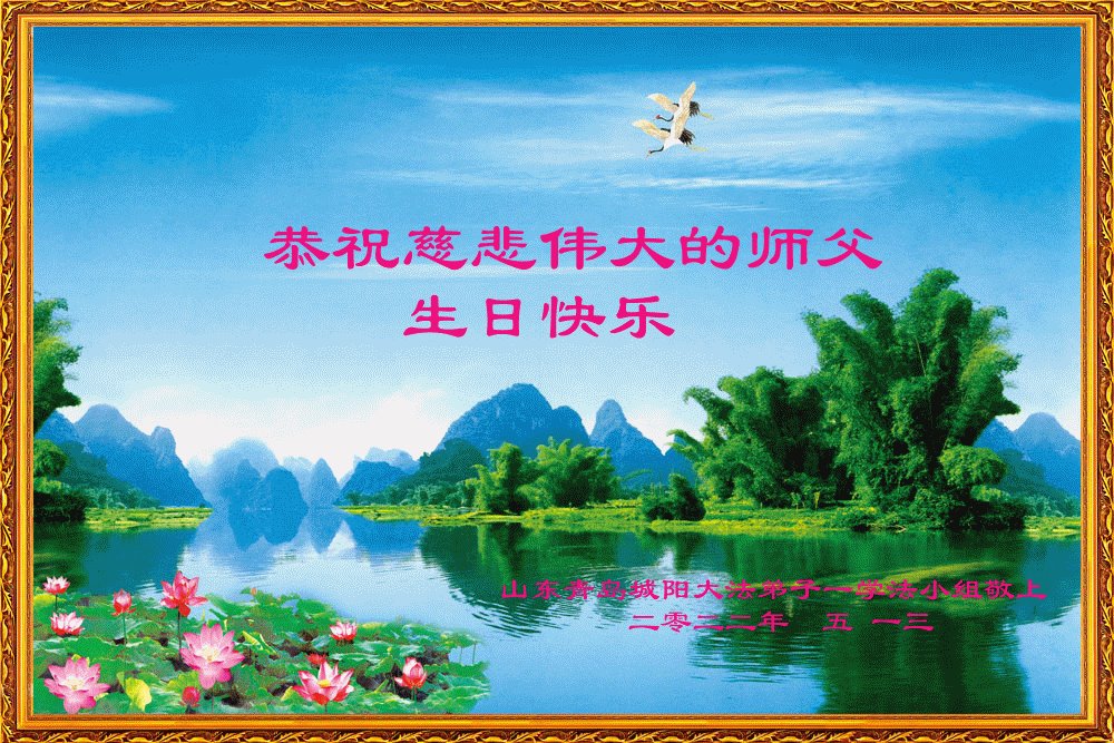 山东青岛城阳一学法小组大法弟子恭祝师父生日快乐!