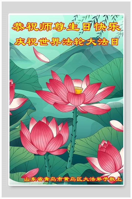 山东青岛大法弟子恭祝慈悲伟大的师父生日快乐!恭贺世界法轮大法日!
