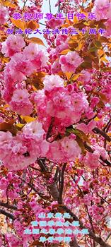 时间飞逝,转眼间师尊传法已三十载。伟大的师尊啊!您为苍宇众生耗尽了心血,让我们喜得宇宙大法!我们无法用语言表达对师尊的感恩,唯有精進实修,叩拜师尊生日快乐! 山东省青岛-大法弟子恭贺世界法轮大法日!