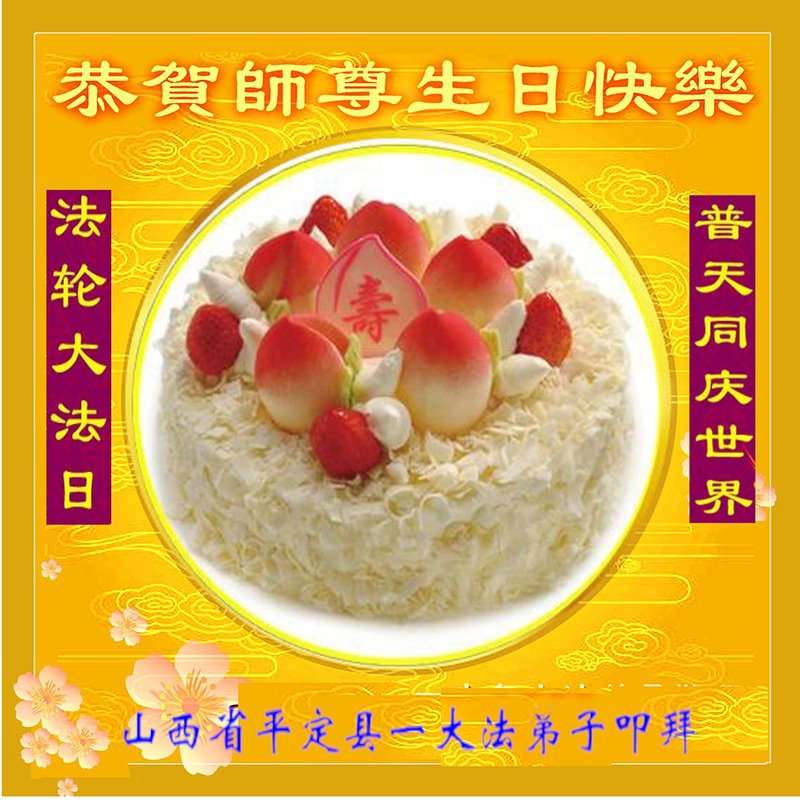 普天同庆世界法轮大法日! 正法進程突飞猛進,法正人间在即。弟子们无比珍惜这亘古未有的大法修炼和随师正法的宝贵机缘。 伟大的师尊,请您放心吧!在这宇宙正法的最后阶段,弟子们一定更加精進,多学法,勤炼功,增强发正念,加紧讲真相,做好三件事。我们一定按大法的要求去做,遇到问题向内找,修好自己,互相提醒,互相帮助,整体提高,携手并肩,圆容配合,完成历史使命,跟师尊回家! 在此,弟子们敬拜师尊:恭祝师尊生日快乐! 山西太原晋源区全体大法弟子恭祝慈悲伟大的师尊生日快乐!
