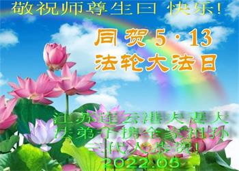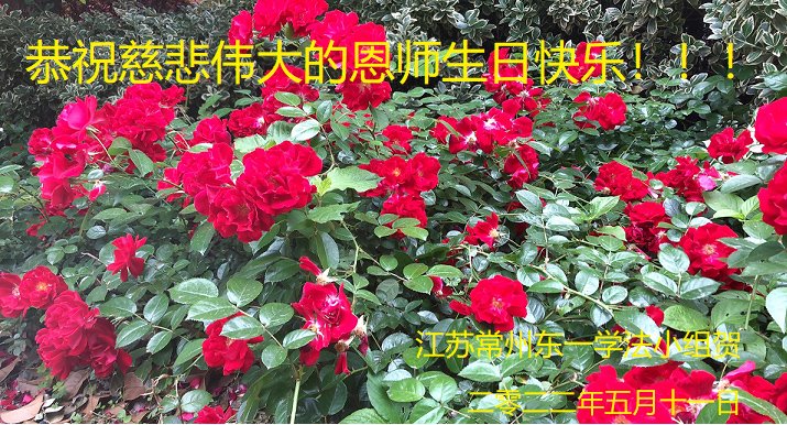 【明慧网二零二二年五月十三日】 江苏常州东部一学法小组大法弟子恭祝师尊生日快乐!
