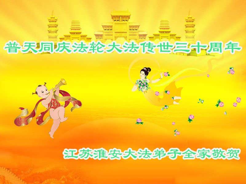 师父您辛苦了! 江苏淮安大法弟子全家普天同庆法轮大法传世三十周年!