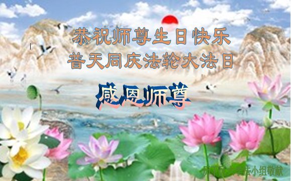 恭祝师尊生日快乐!恭贺世界法轮大法日!谢谢师尊慈悲苦度!师尊辛苦了! 山东济南历下区学法小组大法弟子恭祝师尊生日快乐!恭贺世界法轮大法日!