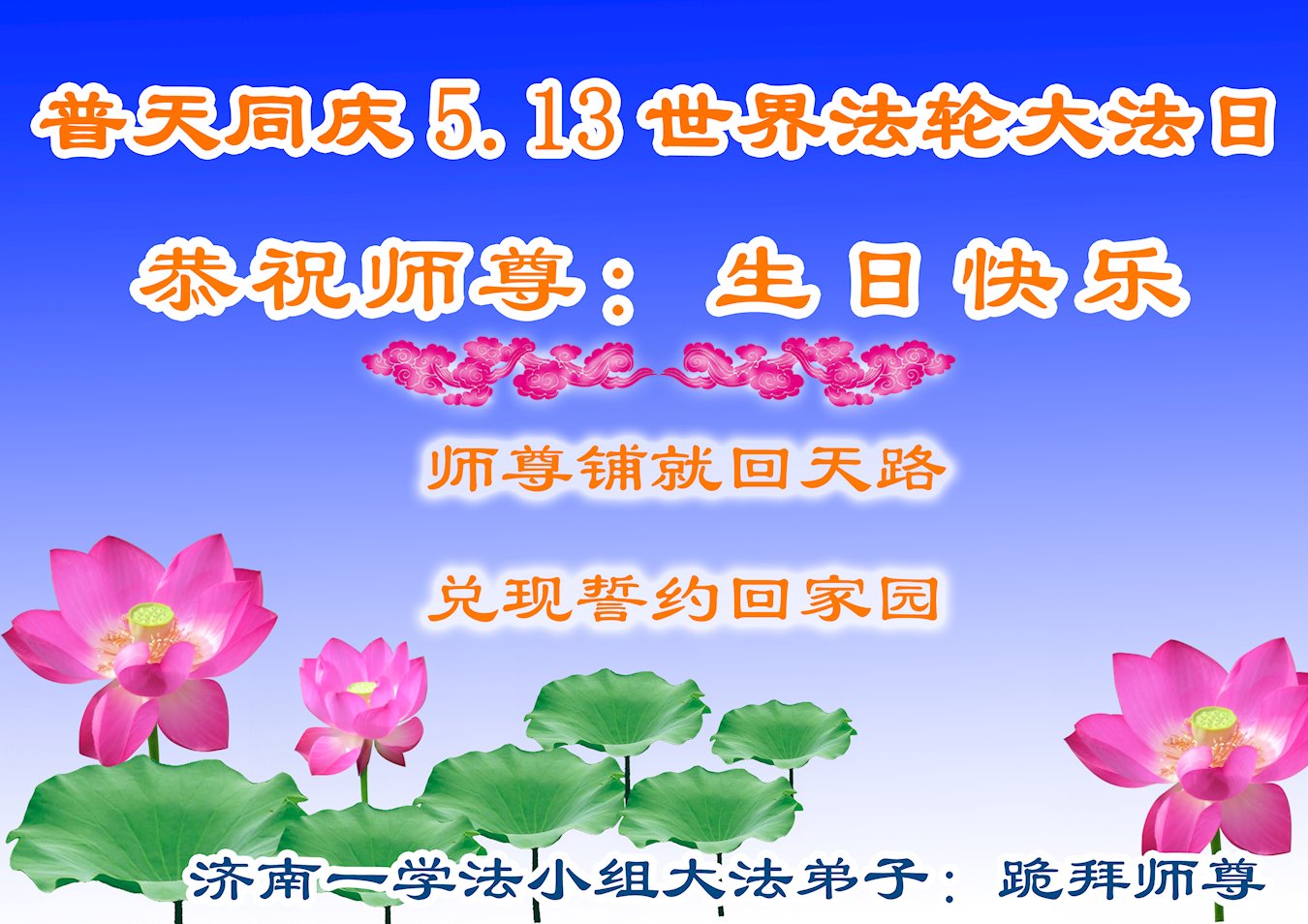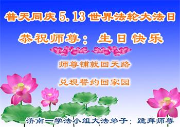 恭祝师尊生日快乐! 山东省济南市章丘市区一大法弟子恭贺法轮大法日!恭祝师尊生日快乐!