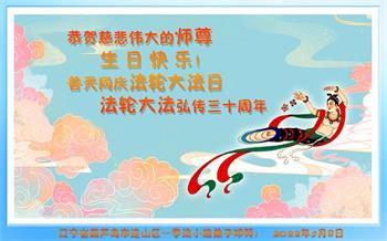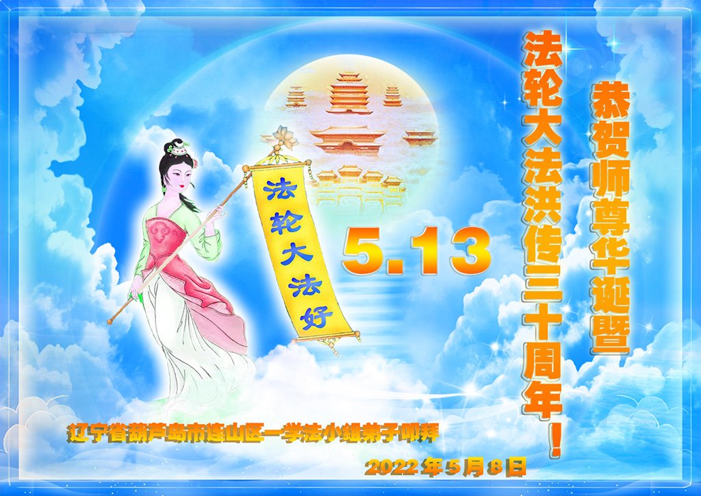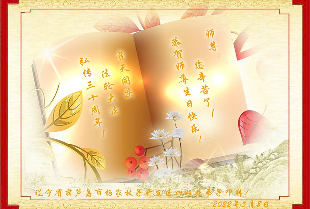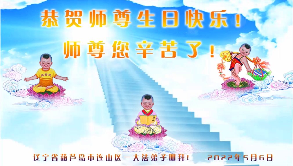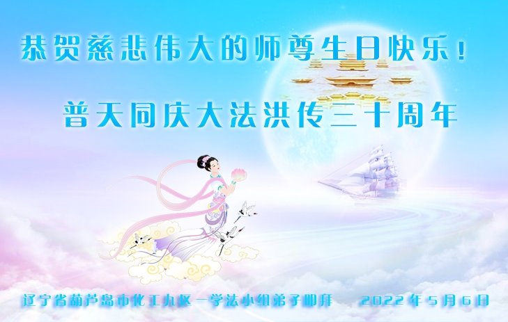 【明慧网二零二二年五月十三日】 辽宁省葫芦岛市全体大法弟子恭祝慈悲伟大的师尊生日快乐!
