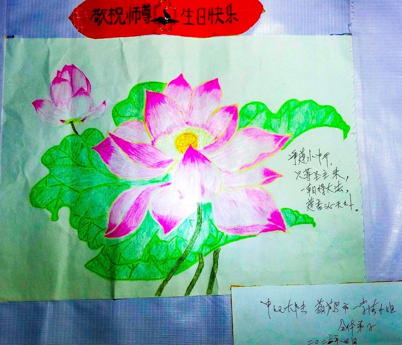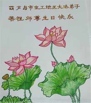 辽宁葫芦岛市一学法小组全体大法弟子恭祝师尊生日快乐! 净莲水中开, 只等圣主来, 一朝得大法, 莲香沁天外。 中国大陆辽宁葫芦岛市一学法小组全体大法弟子 二零二二年四月二十日 辽宁省葫芦岛市连山区一大法弟子恭祝师尊生日快乐!