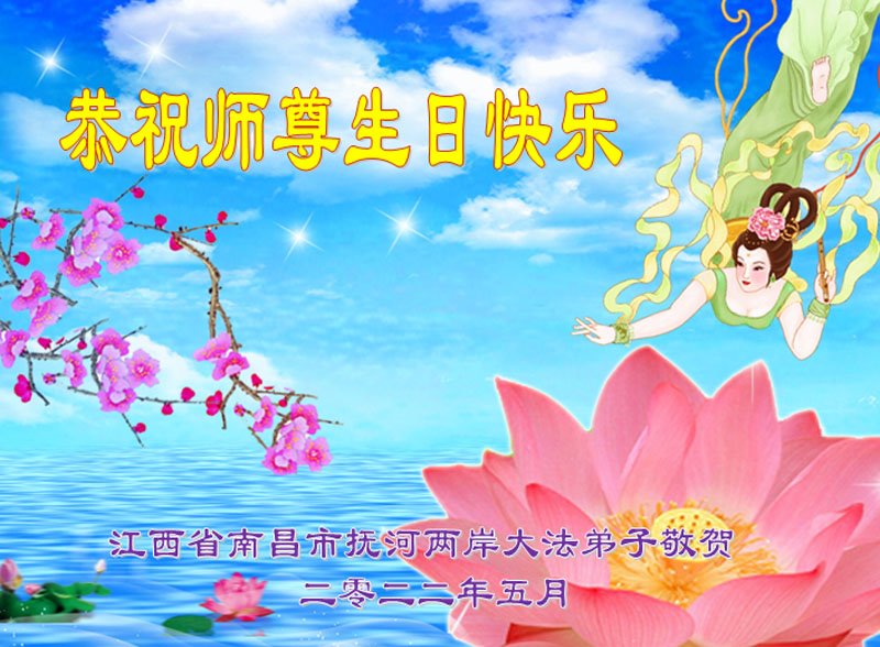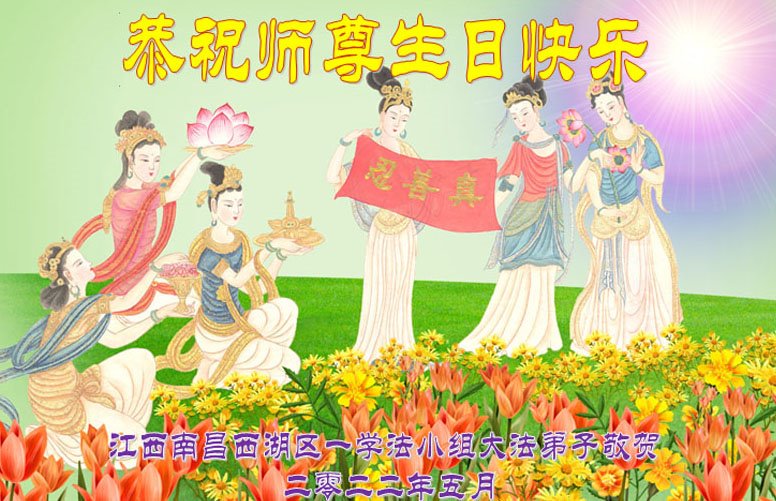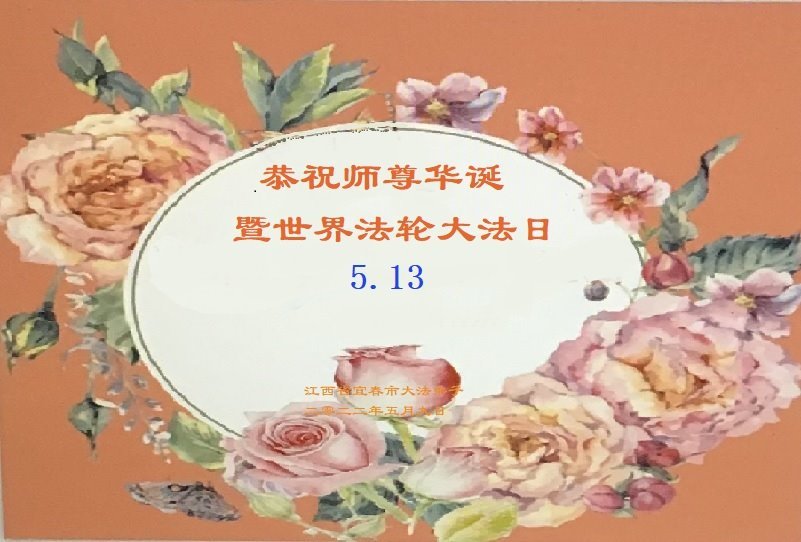 【明慧网二零二二年五月十三日】 江西省南昌市一学法小组大法弟子恭祝慈悲伟大的师尊生日快乐!普天同庆法轮大法洪传世界三十周年!