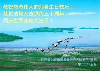 江西省九江市都昌县万户大法弟子恭祝师尊生日快乐!恭贺世界法轮大法日!