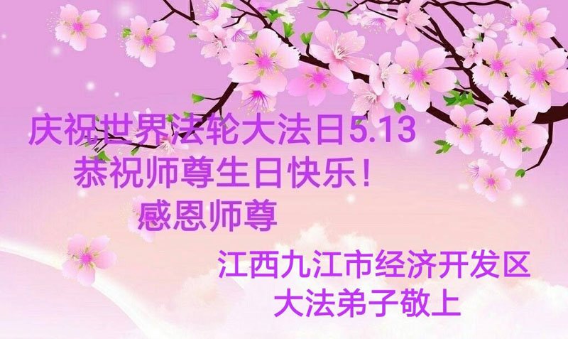 江西九江市经济开发区大法弟子恭祝师父生日快乐!庆祝世界法轮大法日!