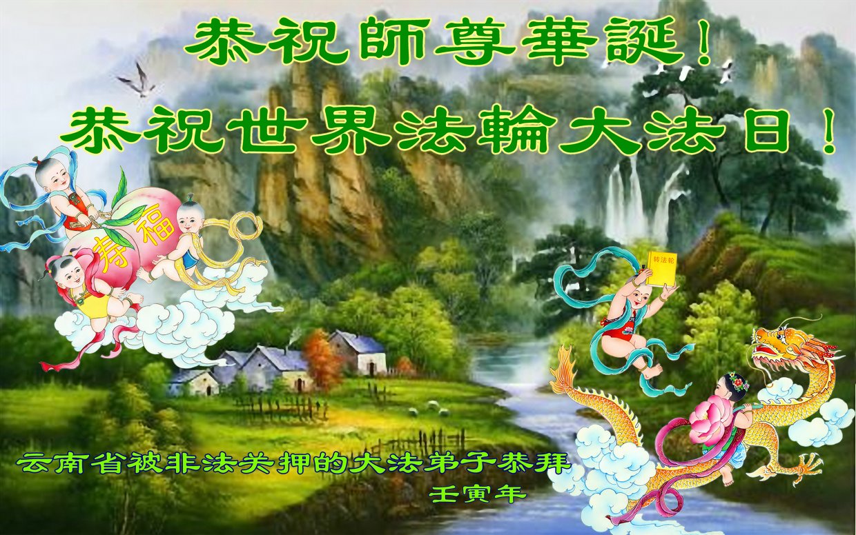 弟子倍感师尊慈悲苦度,佛恩浩荡。向伟大师父表达无尽感恩! 云南省被非法关押的大法弟子恭祝师尊华诞!恭祝世界法轮大法日!