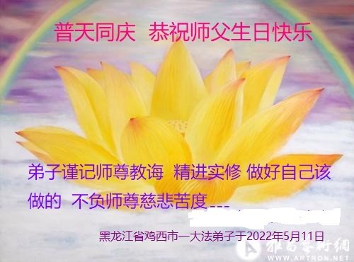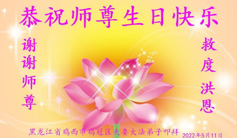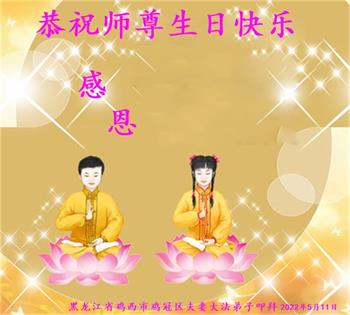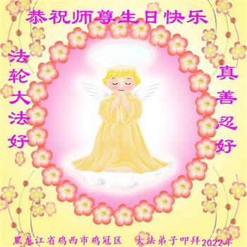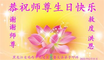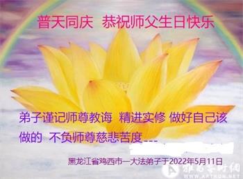 【明慧网二零二二年五月十三日】 黑龙江省鸡西市鸡冠区大法弟子恭祝师尊生日快乐!恭贺世界法轮大法日!
