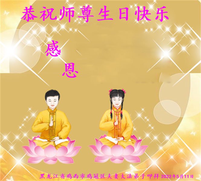 黑龙江省鸡西市鸡冠区夫妻大法弟子恭祝师尊生日快乐!恭贺世界法轮大法日!