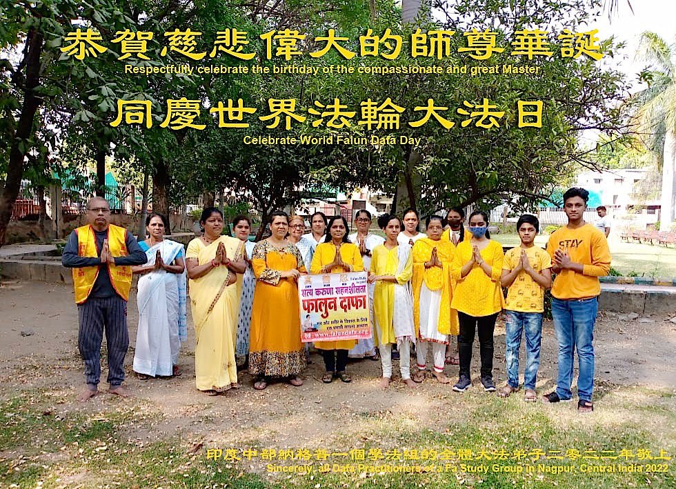 【明慧网二零二二年五月十三日】 印度中部纳格普一学法组大法弟子恭贺师尊华诞!同庆世界法轮大法日!
