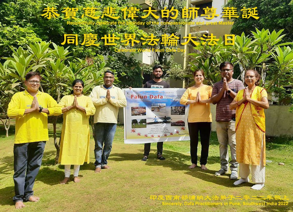 印度西南部浦纳大法弟子恭贺师尊华诞!同庆世界法轮大法日!
