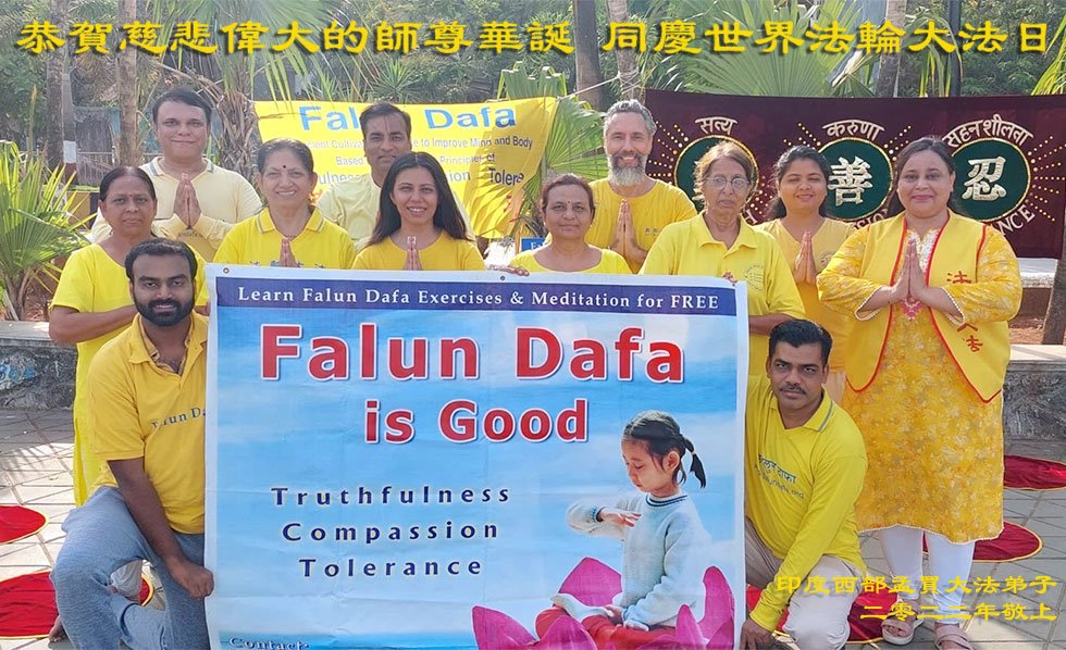 印度西部孟买大法弟子恭贺师尊华诞!同庆世界法轮大法日!