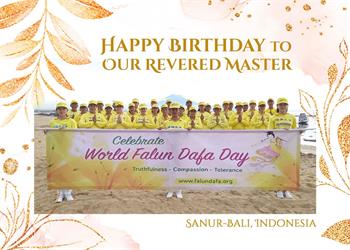 印度尼西亚巴利岛沙努尔大法弟子庆贺世界法轮大法日!恭祝师尊生日快乐!