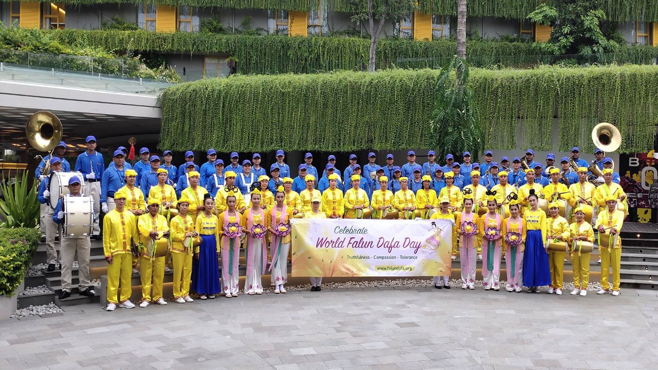 印度尼西亚天国乐团和腰鼓队大法弟子庆贺世界法轮大法日!