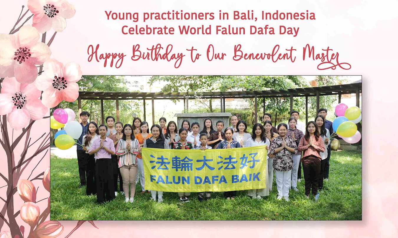 印度尼西亚巴利岛青年大法弟子庆贺世界法轮大法日!恭祝慈悲伟大的师尊生日快乐!