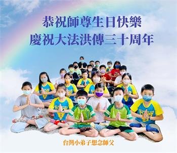 沐浴在师尊的法光中,感谢与想念师尊的心无以言表! 台湾一国小师生恭祝师尊生日快乐!恭贺世界法轮大法日暨师尊华诞!