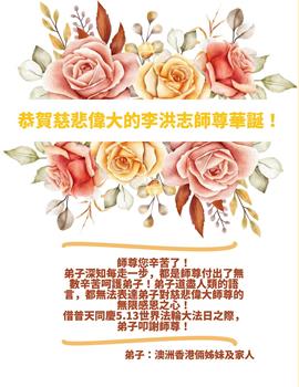 【明慧网二零二二年五月十三日】 全体台湾大法弟子恭祝师尊生日快乐!