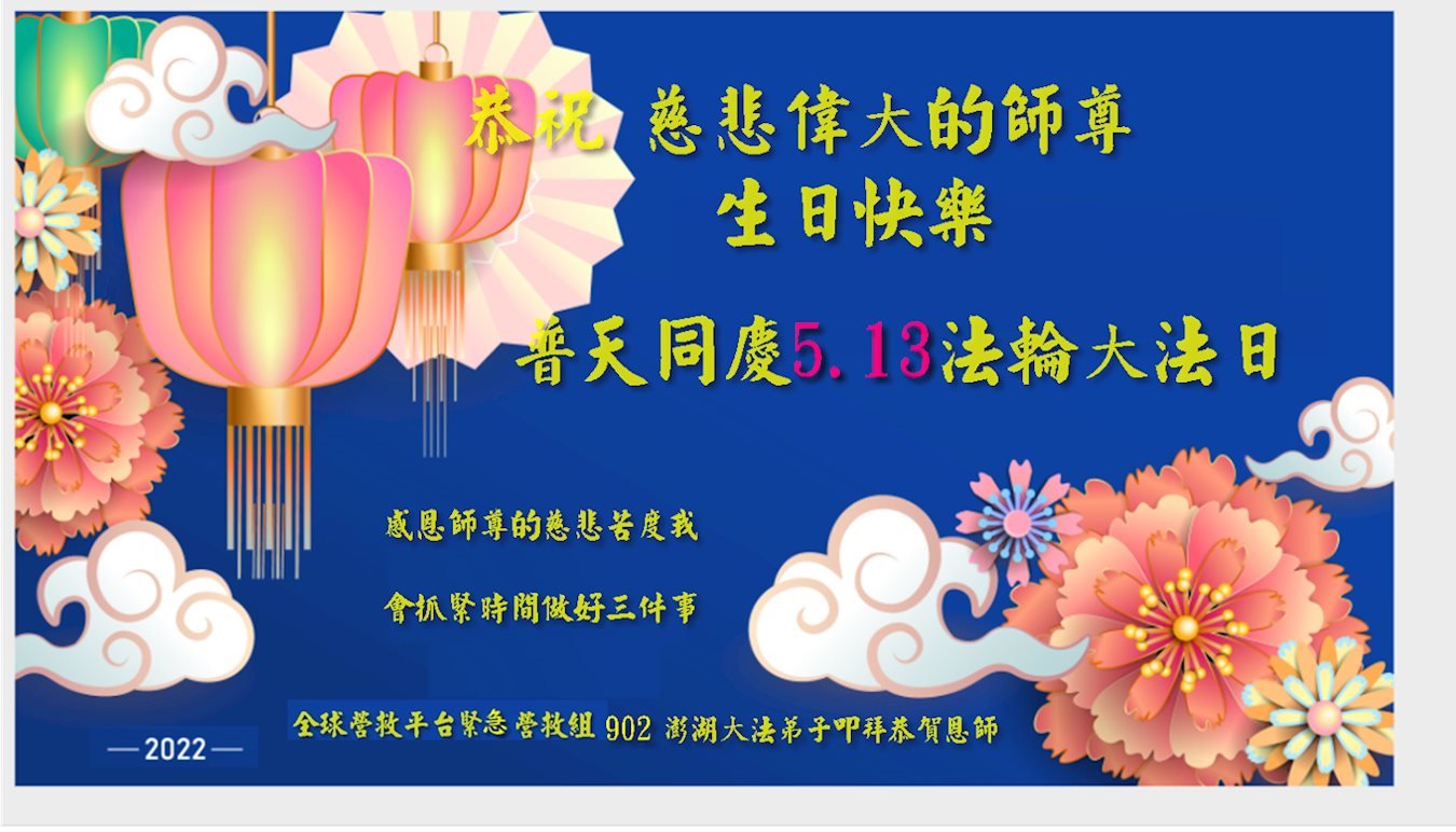 全球营救平台902紧急营救组澎湖大法弟子恭祝慈悲伟大的师尊生日快乐!