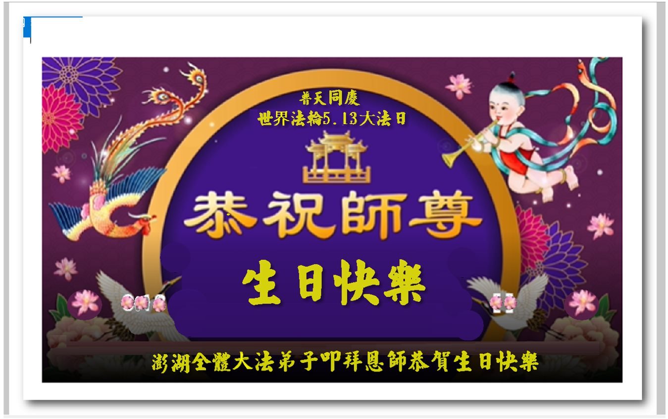 台湾澎湖全体大法弟子恭祝师尊生日快乐!