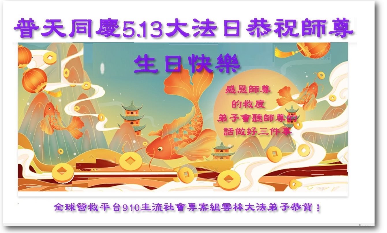 全球营救平台910主流社会项目组云林大法弟子恭祝慈悲伟大的师尊生日快乐!