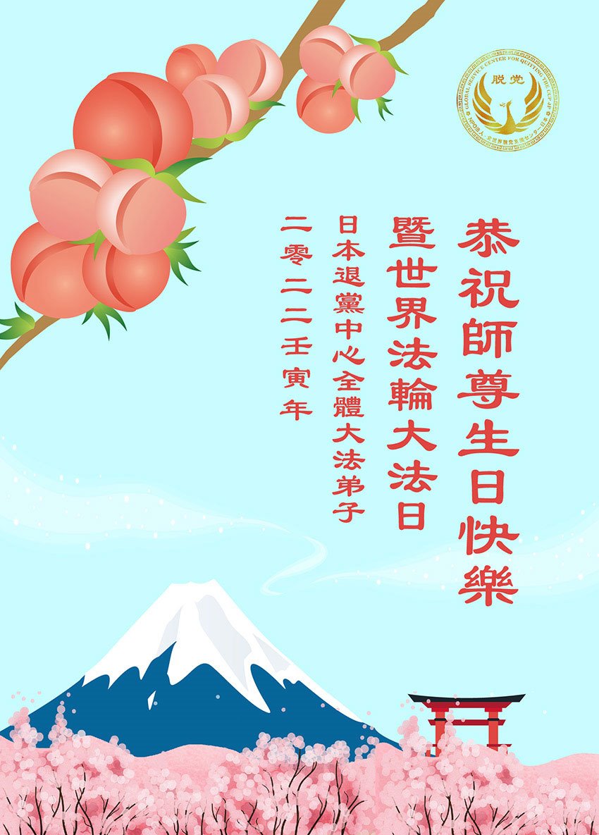 日本退!党!中心全体大法弟子恭贺世界法轮大法日!恭祝师尊生日快乐!