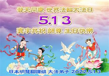 【明慧网二零二二年五月十三日】 日本明慧翻译组大法弟子恭贺法轮大法日!恭祝师尊生日快乐!