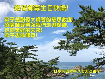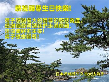 师尊您辛苦了!谢谢您的慈悲苦度!弟子一定精進,随师回家! 日本茨城县牛久市大法弟子恭祝师尊生日快乐!