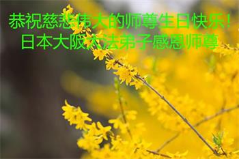 恭贺五·一三世界法轮大法日! 感恩师尊慈悲救度,弟子坚持学法修心不怠慢,完成使命返本归真随师还。 日本大阪大法弟子感恩师尊 日本大法弟子恭祝慈悲伟大的师尊生日快乐!