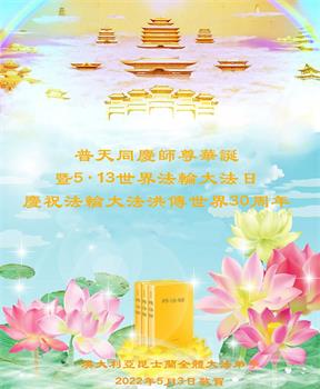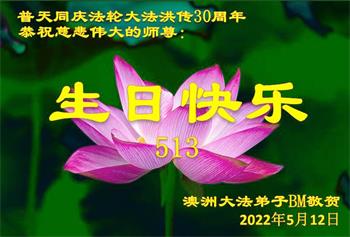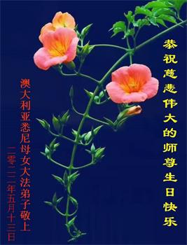 【明慧网二零二二年五月十三日】 澳大利亚悉尼大法弟子恭祝慈悲伟大的师尊生日快乐!