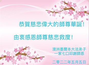 澳大利亚墨尔本东区一家大法弟子恭贺师尊华诞暨世界法轮大法日!