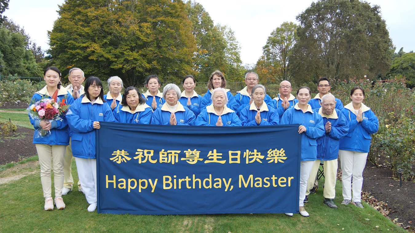 澳大利亚墨尔本平台讲真相部份老年大法弟子恭祝师尊生日快乐!