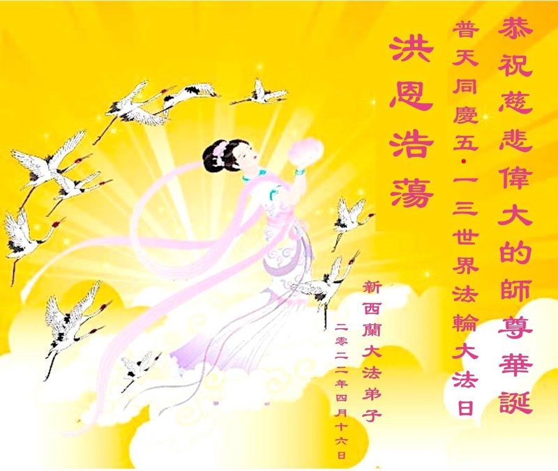 新西兰大法弟子恭祝慈悲伟大的师尊生日快乐!普天同庆世界法轮大法日!