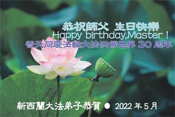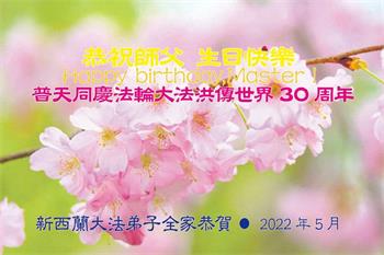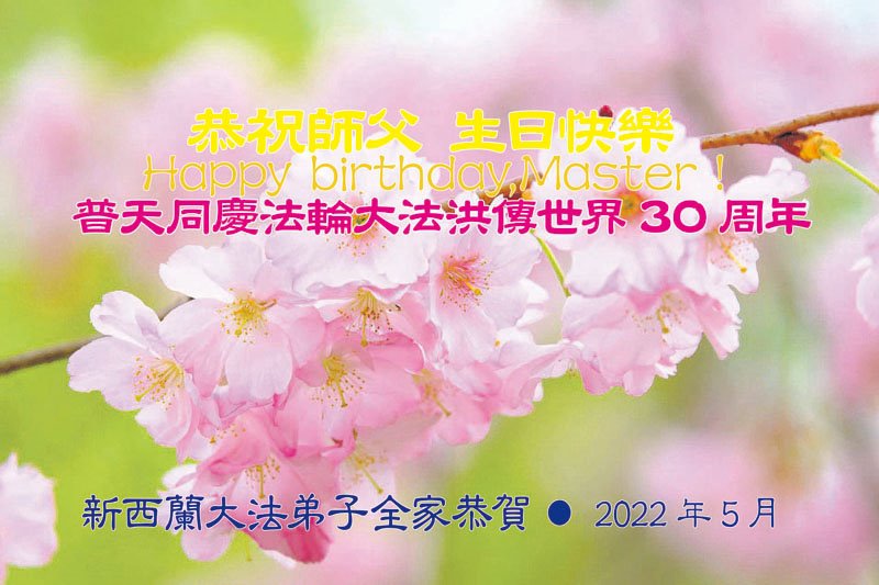 新西兰大法弟子全家恭祝师父生日快乐!普天同庆法轮大法洪传世界30周年