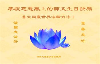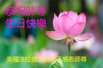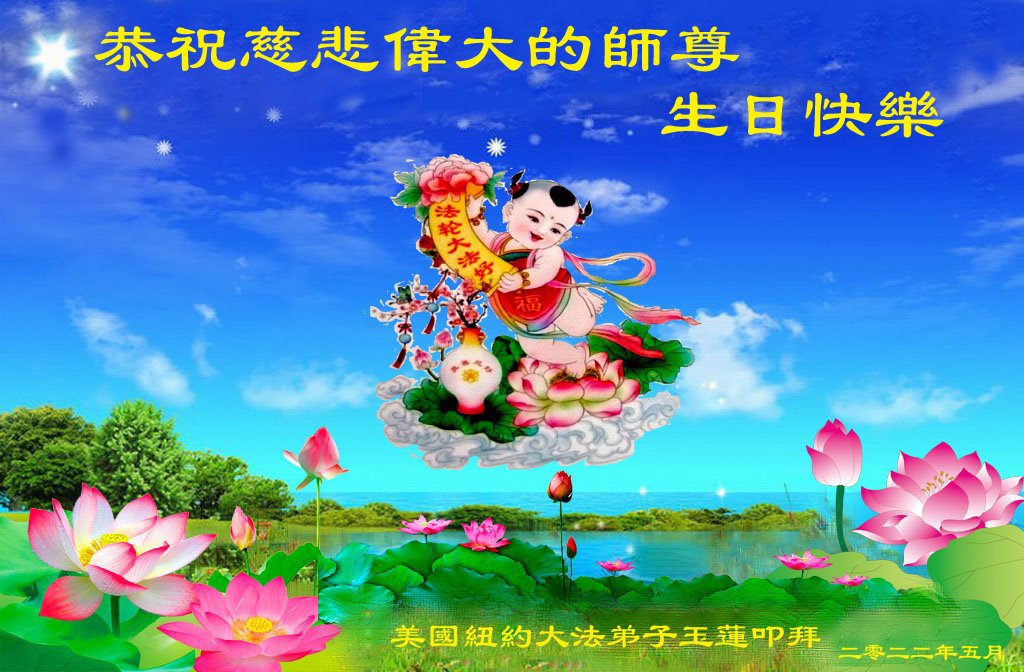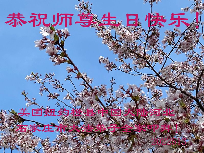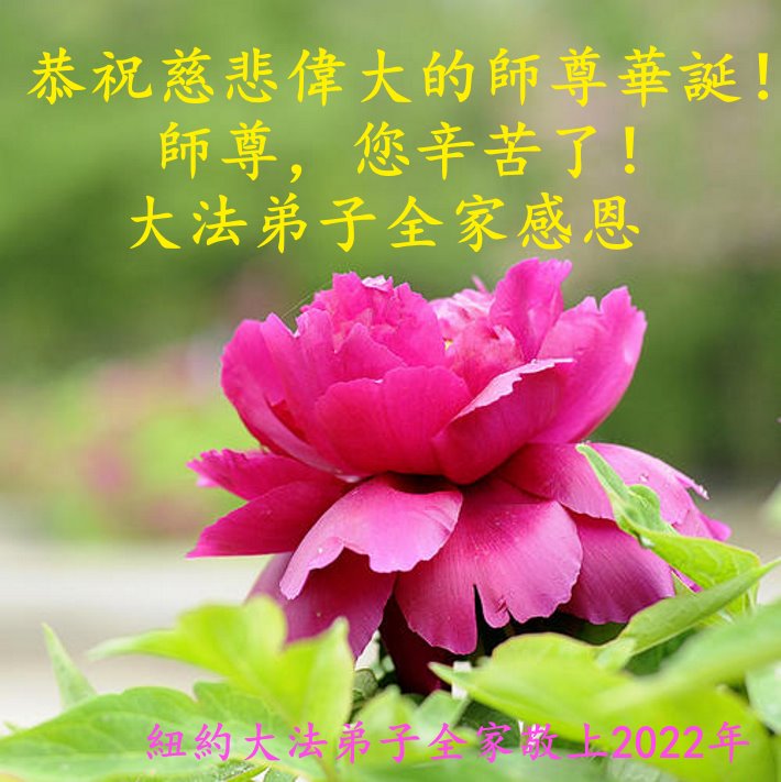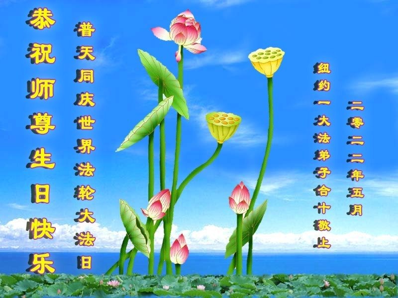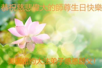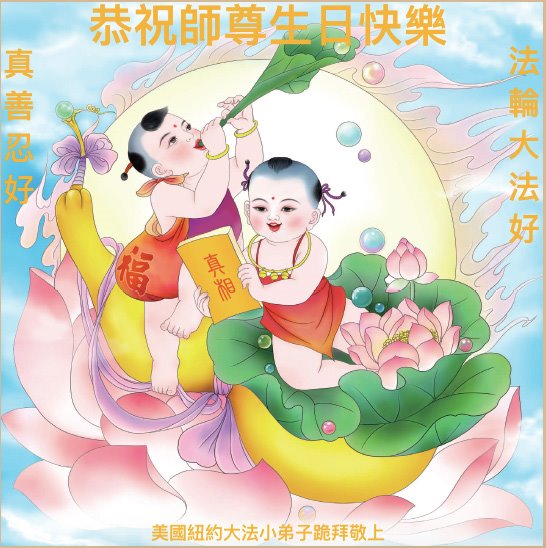 恭祝师尊生日快乐!师尊您辛苦了! 在此正法進入法正人间的关键时刻,弟子们谨记师尊的教诲,放下人心,去除观念,修好自己,多救人。愿世人多得救,愿师尊欣慰! 谢谢师尊! 纽约华裔大法弟子恭贺师尊华诞!