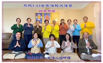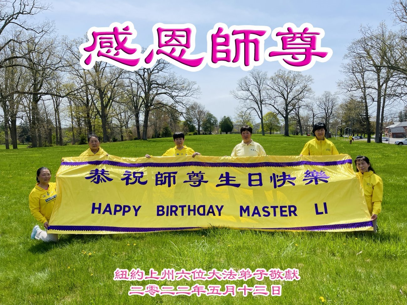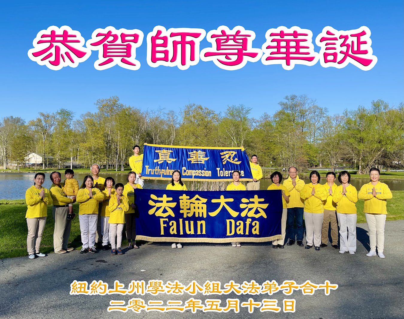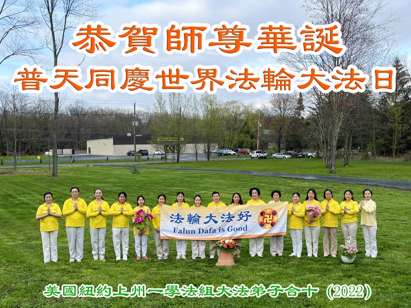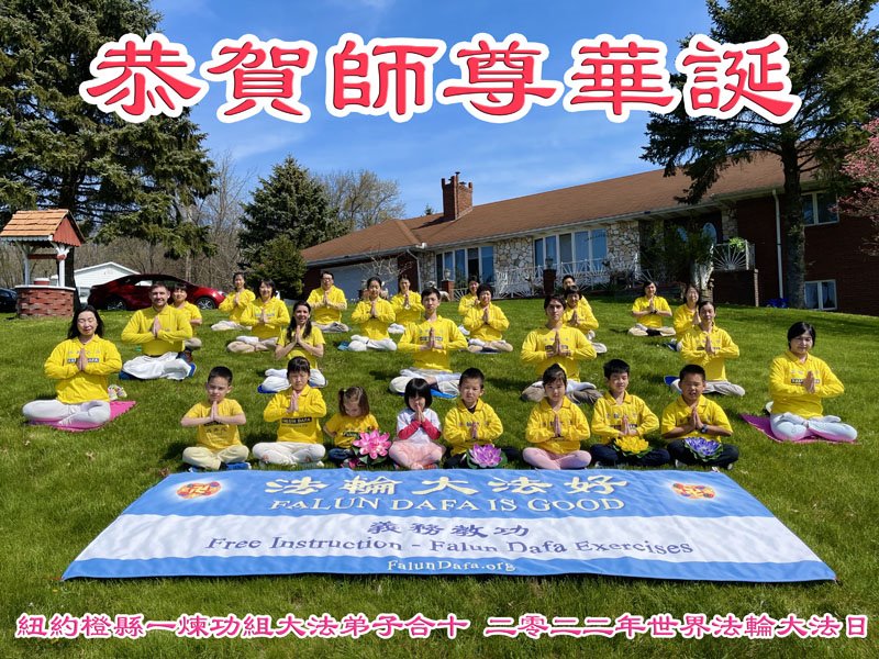 【明慧网二零二二年五月十三日】 纽约橙县一炼功组大法弟子恭贺世界法轮大法日暨师尊华诞!