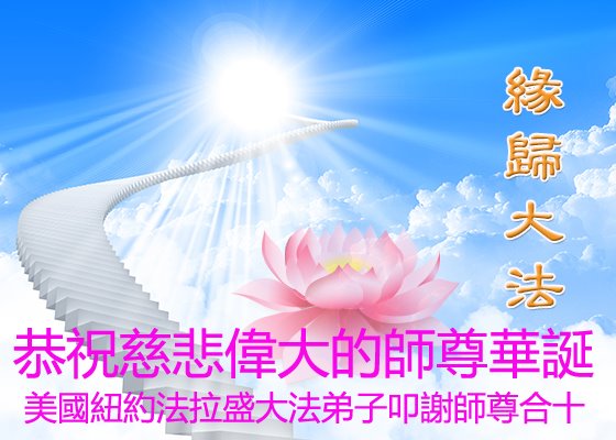 感恩师父慈悲苦度 弟子坚定同化大法 助师正法救度世人 兑誓言跟师父回家 美国纽约法拉盛大法弟子叩谢师尊 合十 美国纽约大法弟子恭祝师尊生日快乐!暨世界法轮大法日!