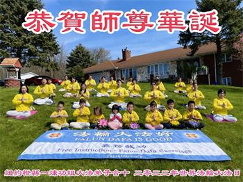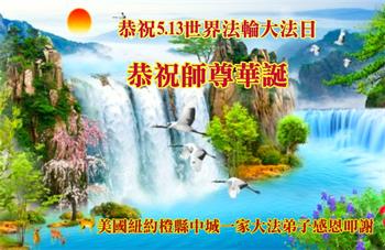 纽约州橙县中城大法弟子全家庆祝世界法轮大法日!恭祝师父生日快乐!