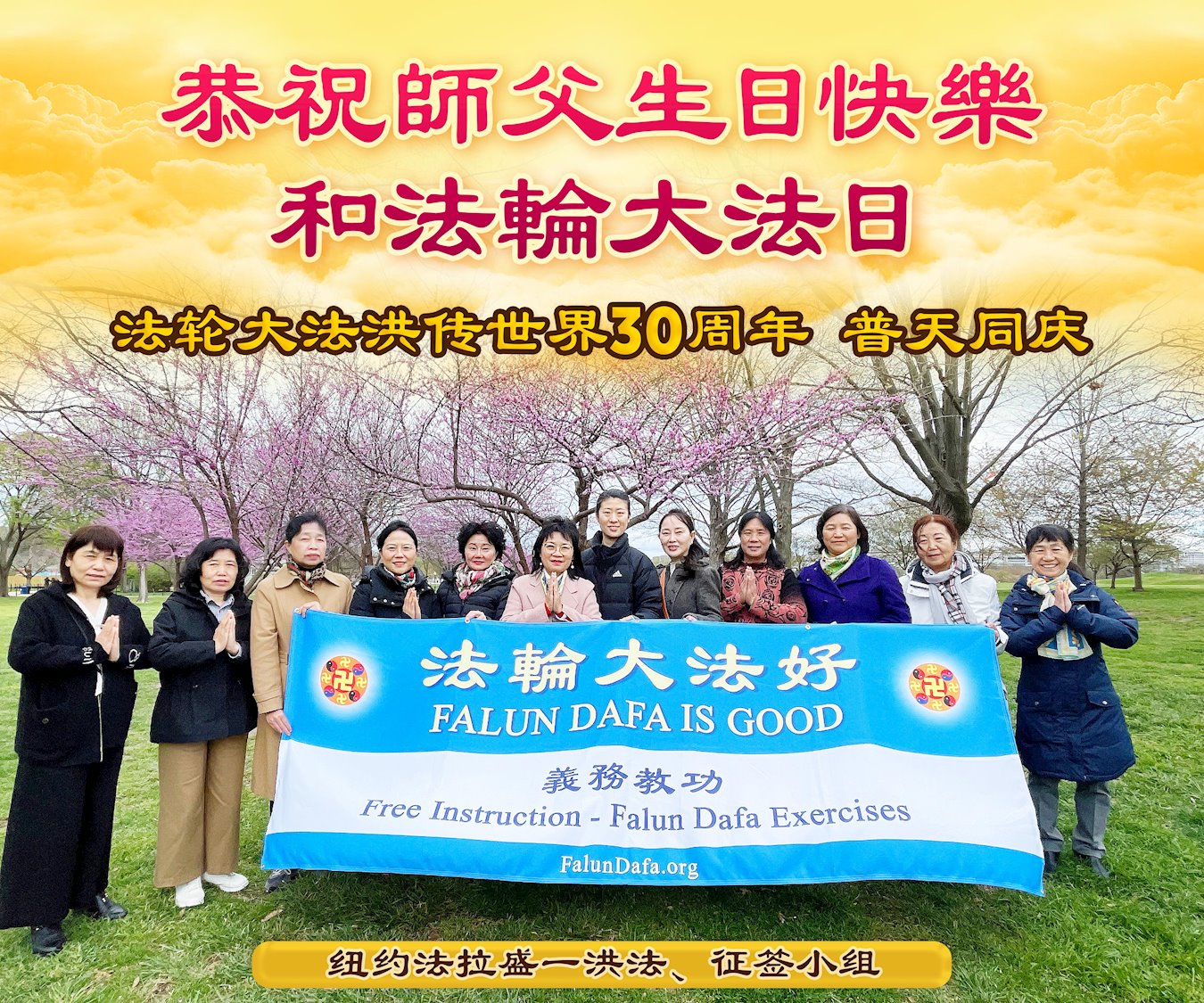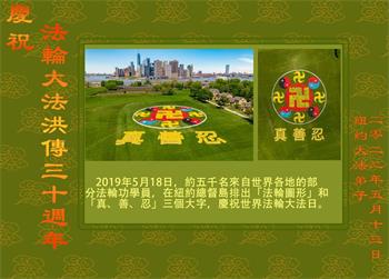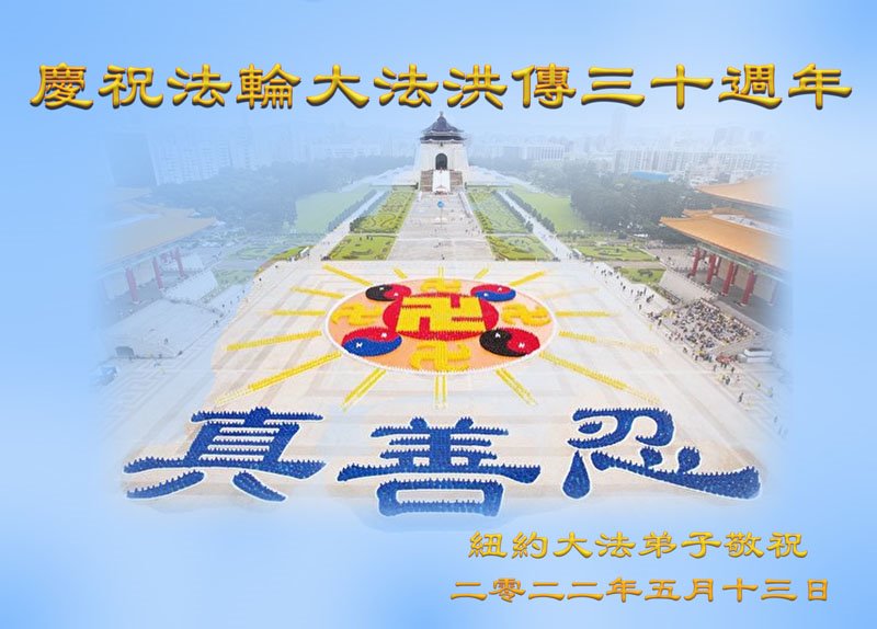 同庆同颂法轮大法洪传三十周年!感恩师尊慈悲救度! 美国纽约大法弟子恭贺世界法轮大法日暨师尊华诞!